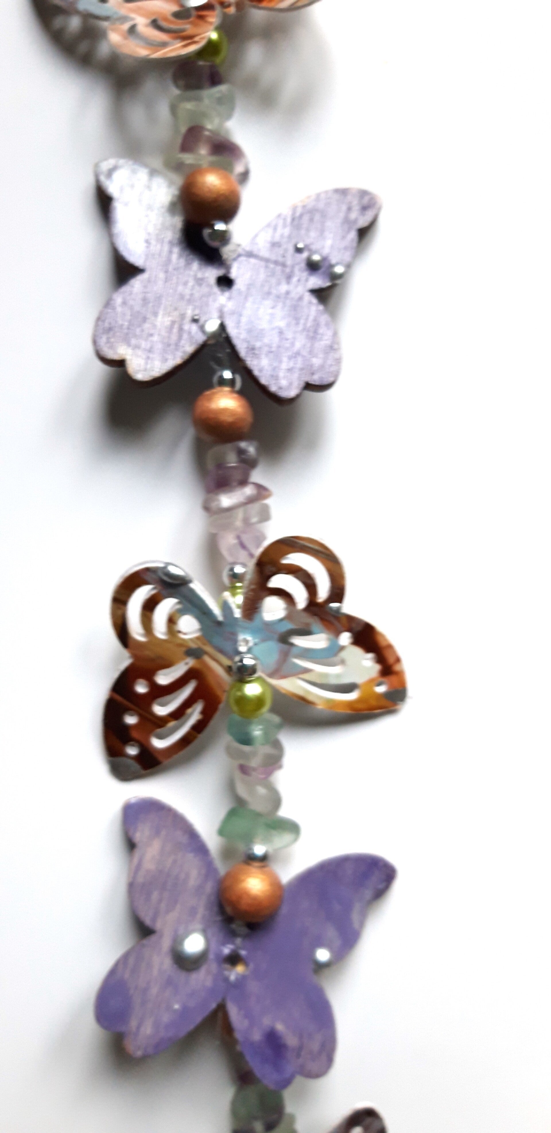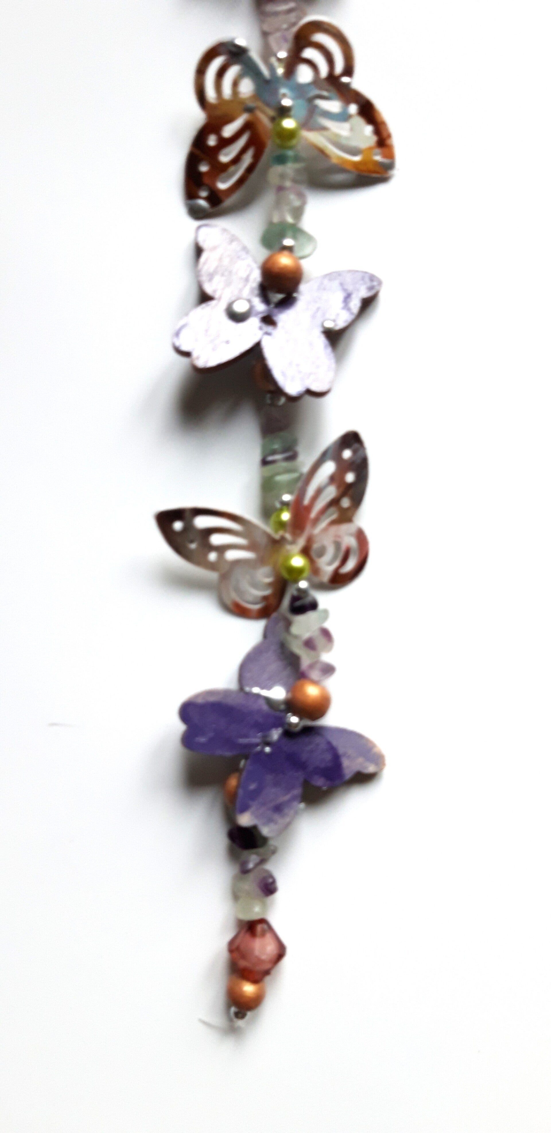 Unieke raam/muurhanger met vlinders en edelstenen paars