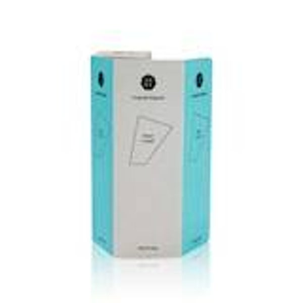 Verpakking: Kristalvormige blauwe kunstof fles, in award winning design doosje van karton. Productinformatie in het Engels.