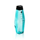 Verpakking: Kristalvormige plastic flessen in een kartonnen geschenkdoos. Productinformatie in het Engels.