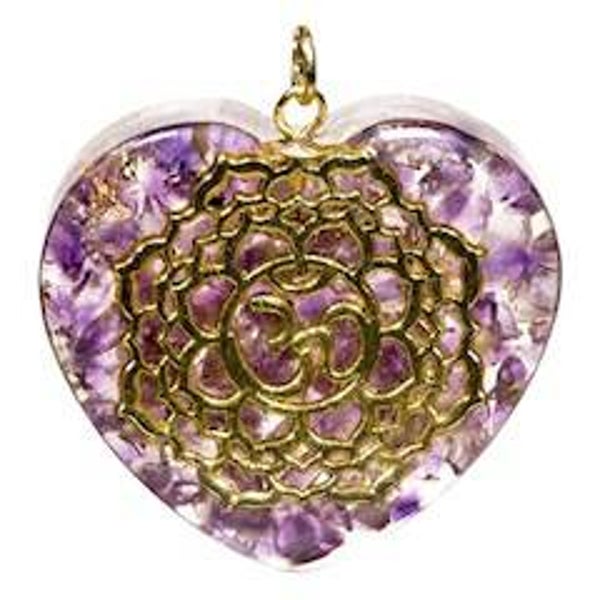 Orgoniet hanger met goudkleurig chakrasymbool.