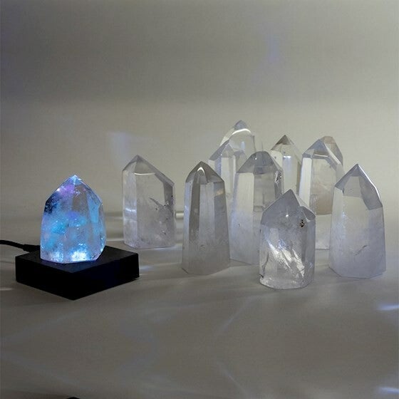 Led display met wisselende kleuren voor het verlichten van kristal figuren en laser blokken.