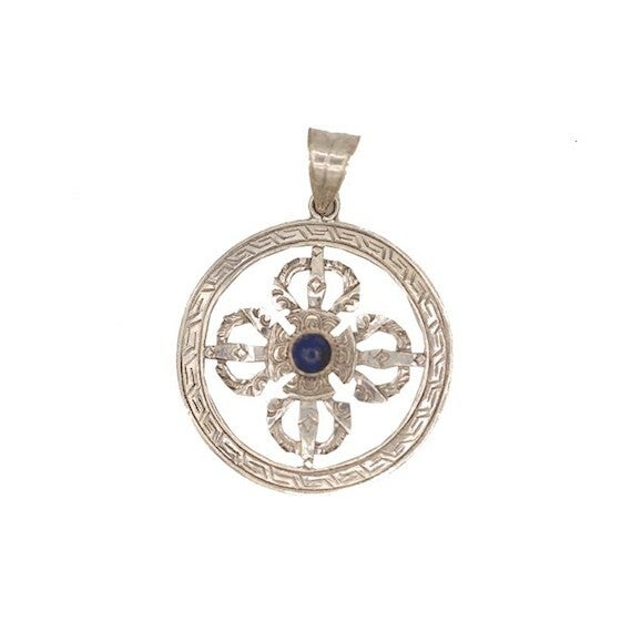 Prachtige fijn gedetailleerde hanger van sterling zilver met dubbele dorje en lapis lazuli siersteen.