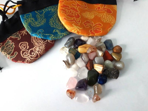 mix van A kwaliteit steentjes o.a. agaat, aventurijn, bergkristal, rozenkwarts, calcedon, tijgeroog en jaspis.