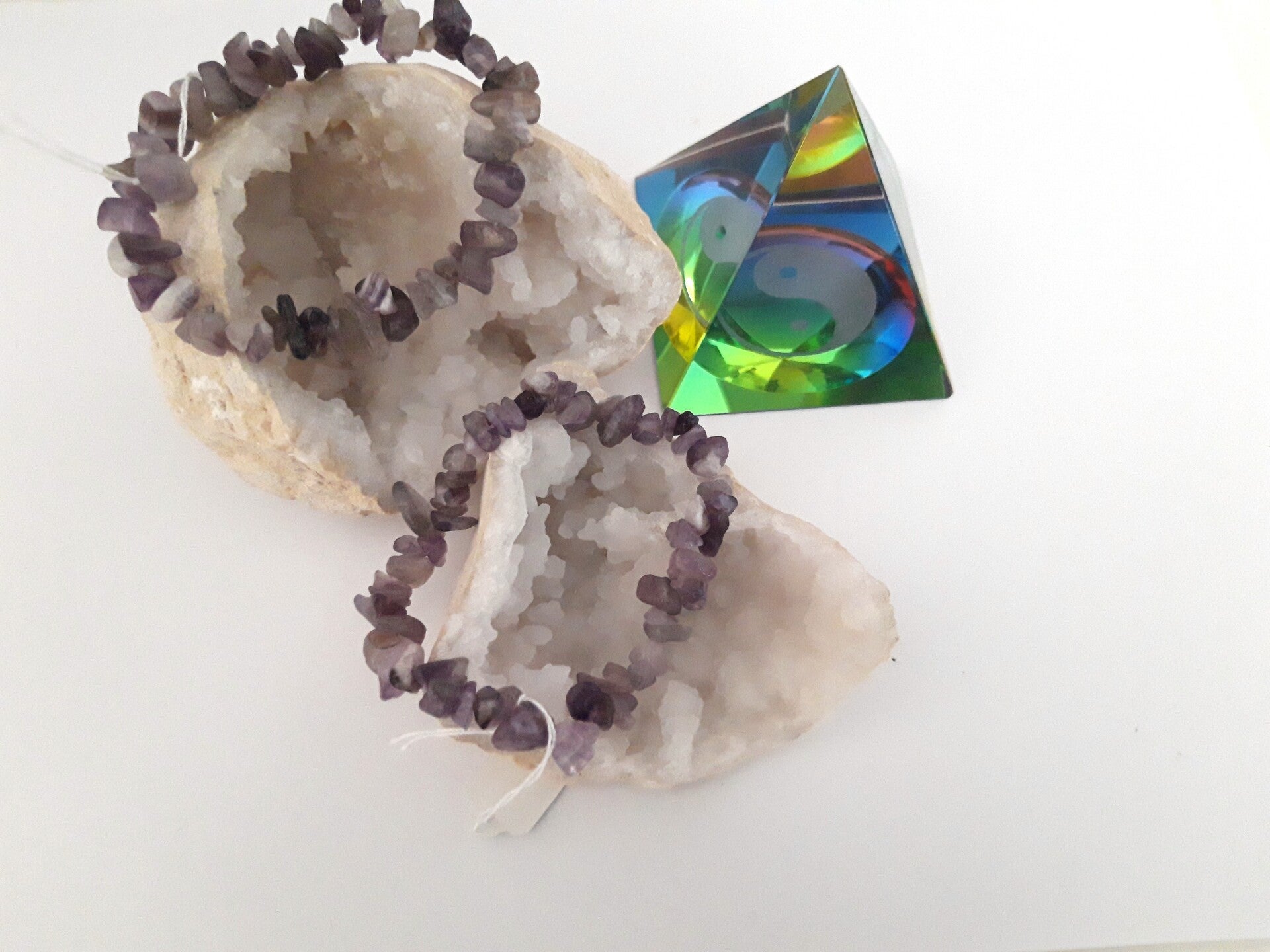 Amethist heeft een beschermende en zuiverende werking. De steen bevordert zelfinzicht en helpt je om eerlijk te zijn naar jezelf toe over gedrag dat schadelijk kan zijn en niet in dienst is van je hoogste zelf. Het helpt je bijvoorbeeld om verslavingen te onderkennen en aan te pakken. Daarnaast geeft de steen ook inzicht in emotionele processen waardoor bepaalde (pijnlijke) ervaringen verwerkt kunnen worden en ook vermijdend gedrag op dit vlak veranderd kan worden. Amethist is vanwege haar reinigende werking ook heel geschikt om een ruimte te zuiveren. Samen met bergkristal en rozenkwarts creëert het een harmonische sfeer. Omdat het de bovenste chakra’s stimuleert, kan het de intuïtie, spirituele groei en inzichten bevorderen, zeker voor mensen die aan het begin staan van hun spirituele pad. Amethist heeft ook een reinigende werking op het lichaam en een positieve invloed op het zenuwstelsel, hoofdpijn en migraine en nachtmerries en andere slaapproblemen.