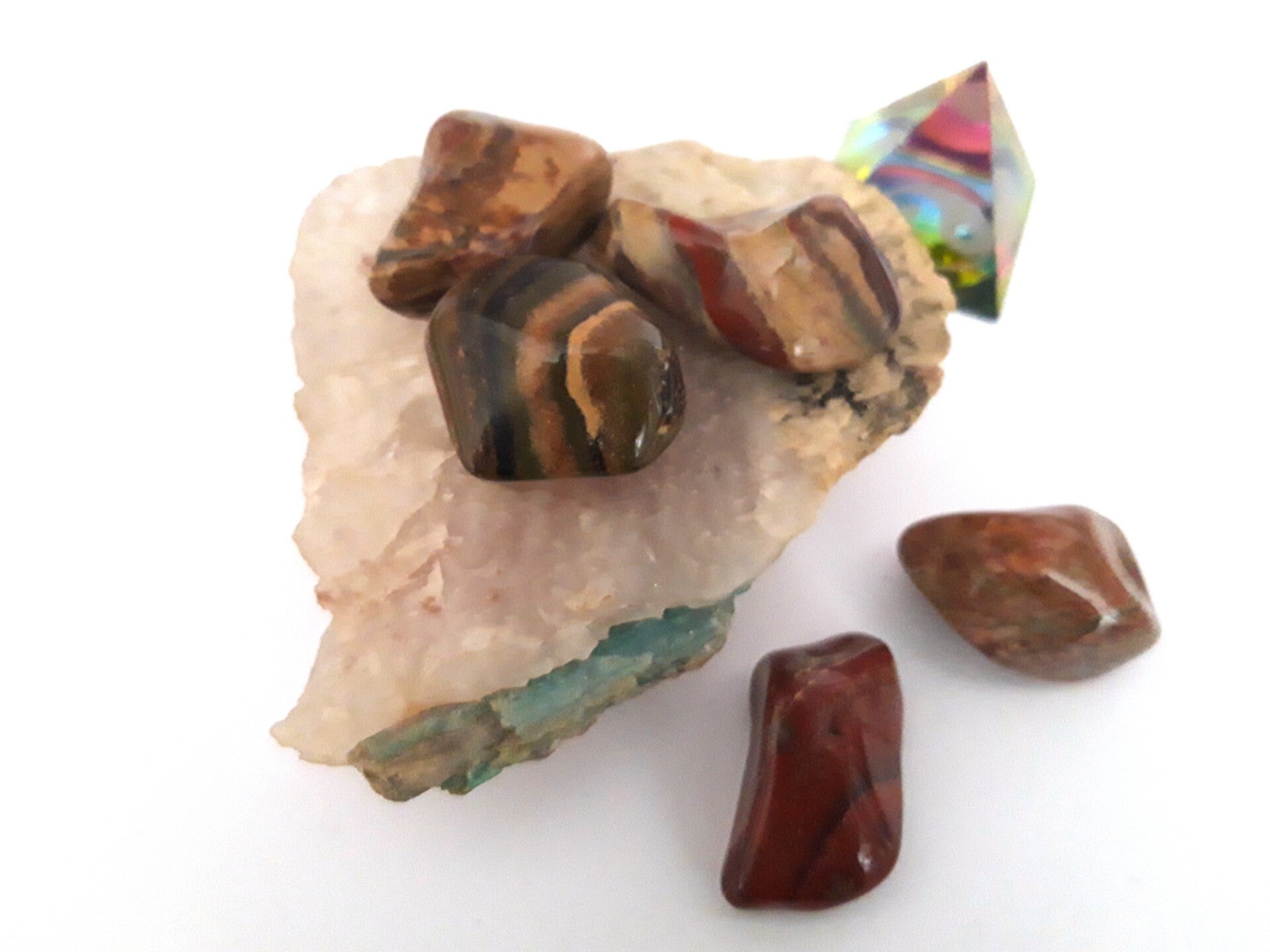 Polychroom jaspis is een combinatie van verschillende kleuren.