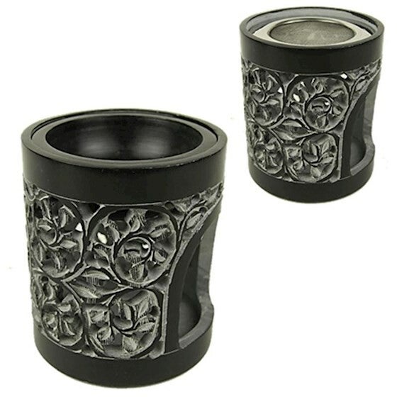 Olieverdamper en wierookbrander van zeepsteen. Wordt geleverd met zeefje en zeepstenen bakje, waardoor hij als wierookbrander én als olieverdamper te gebruiken is.