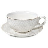 Mooi gedecoreerd schoteltje, theepotje en kop in één.