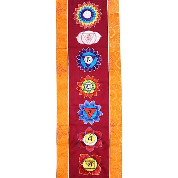 Chakra banier met de 7 chakra's - met brokaat omlijsting