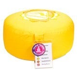 Yogi & Yogini meditatiekussen met geborduurd chakrasymbool aan de bovenzijde en chakranaam op het handvat.