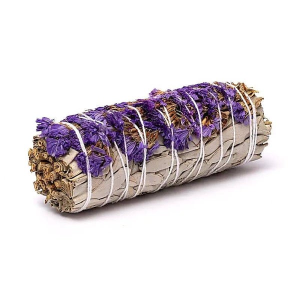 Witte salie smudge bundles bestaan uit samengebonden, gedroogde bladeren van Salvia apiana, hier gecombineerd met paarse sinuata. Het gebruik van aromatische plantenrook vindt zijn oorsprong in inheemse culturen van Noord-Amerika, waar verschillende kruiden werden ingezet afhankelijk van context en intentie. Tegenwoordig worden mengsels met witte salie gebruikt als plantaardige wierook voor ritueel gebruik, meditatie, lichaamswerk of het bewust markeren van een overgang of afronding.