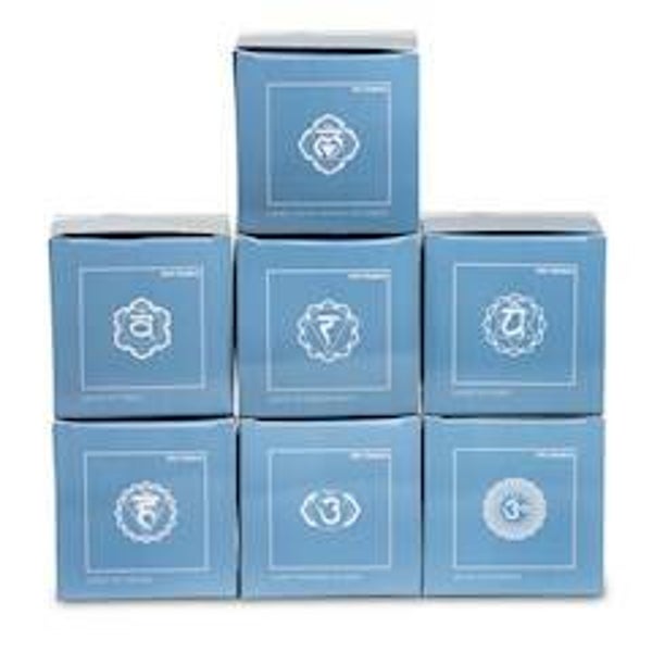 Set van 7 Aartsengel votiefkaarsen, geparfumeerd met etherische oliën. Elke aartsengel is verbonden met een van onze voornaamste chakra's: