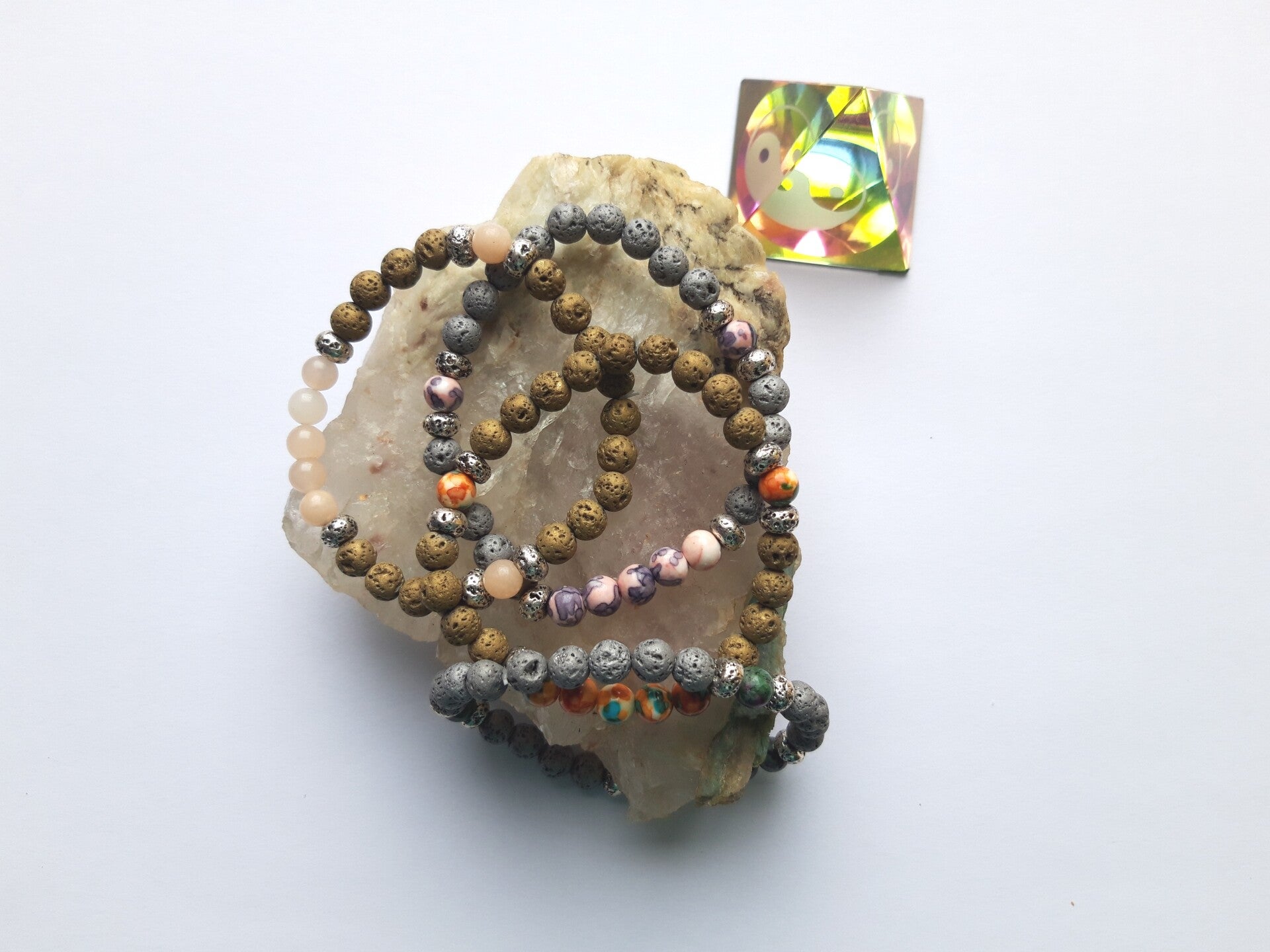 Keuze uit: goud-oranje turquoise, zilver-labradoriet magic orchid, goud-rose quartz, zilver-jade grijs-roze, goud-jade geel-roze
