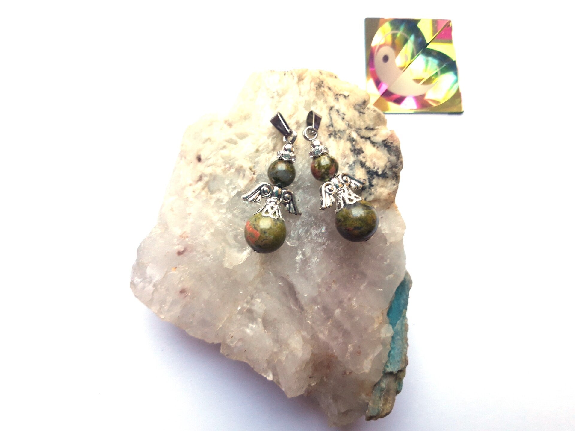 Edelsteen engel hanger, kan aan een ketting gehangen worden.