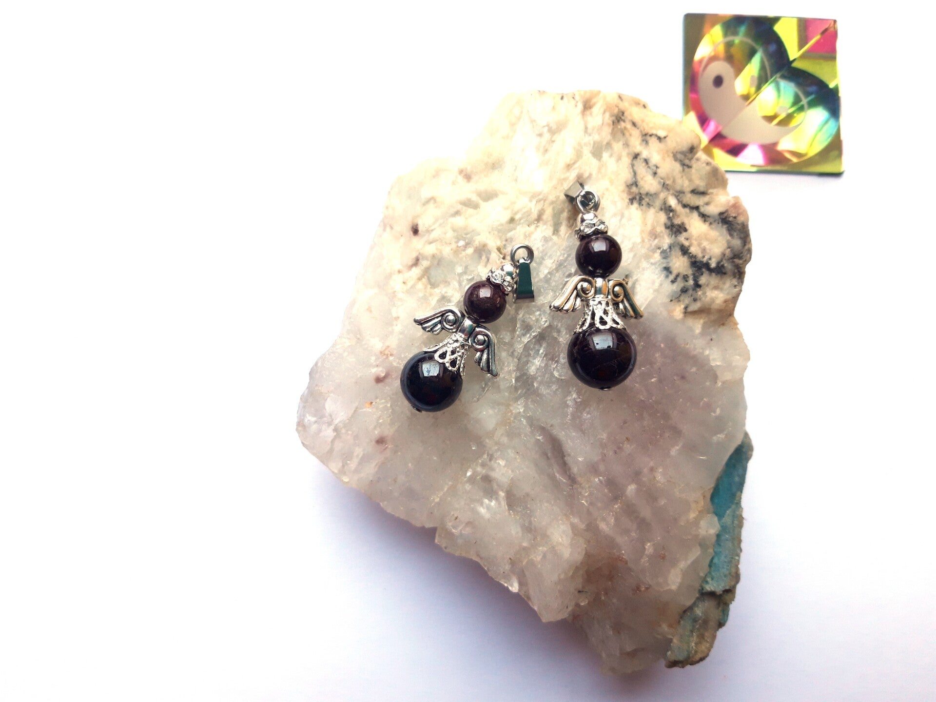 Edelsteen engel hanger, kan aan een ketting gehangen worden.