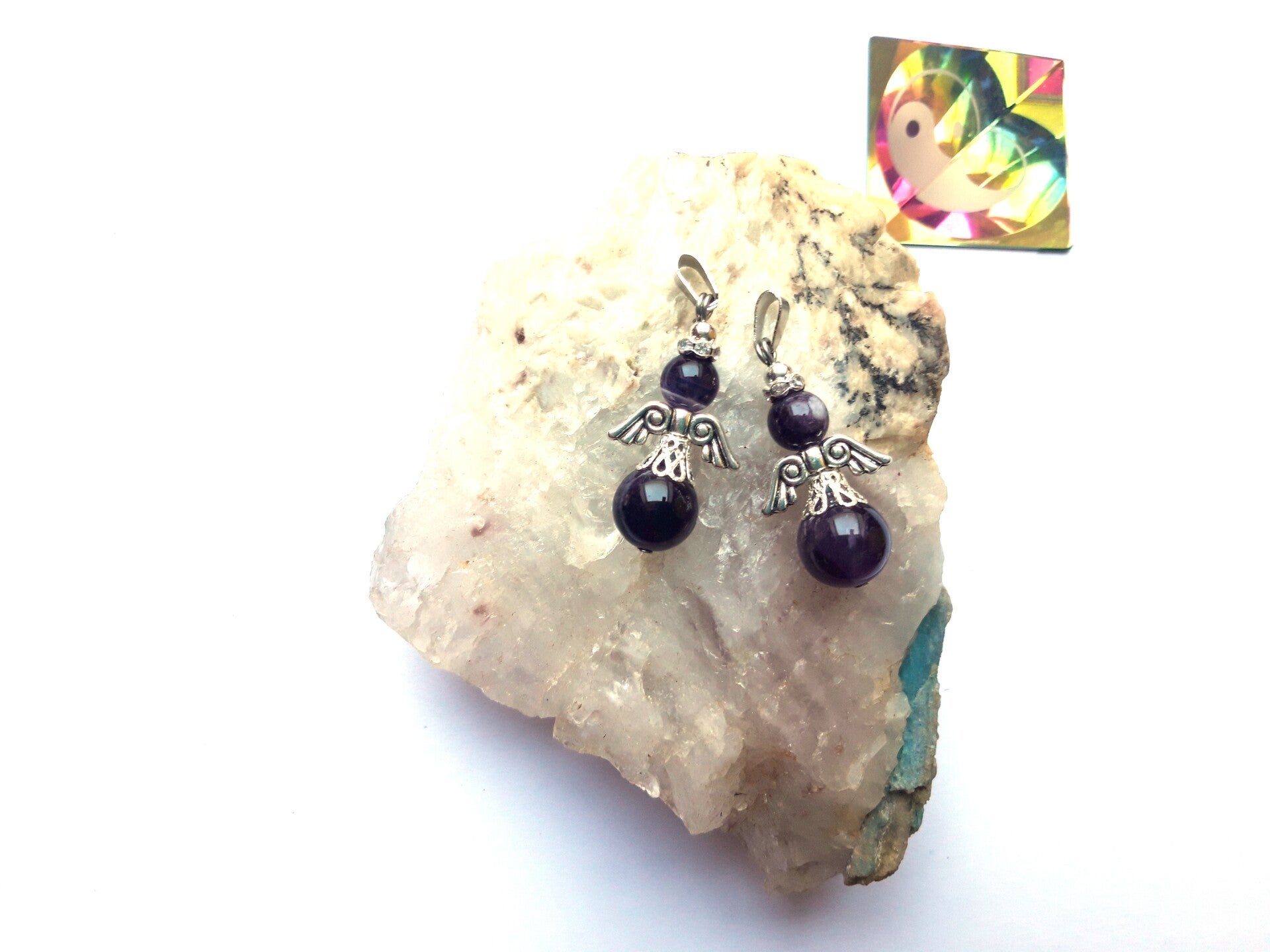 Edelsteen engel hanger, kan aan een ketting gehangen worden.