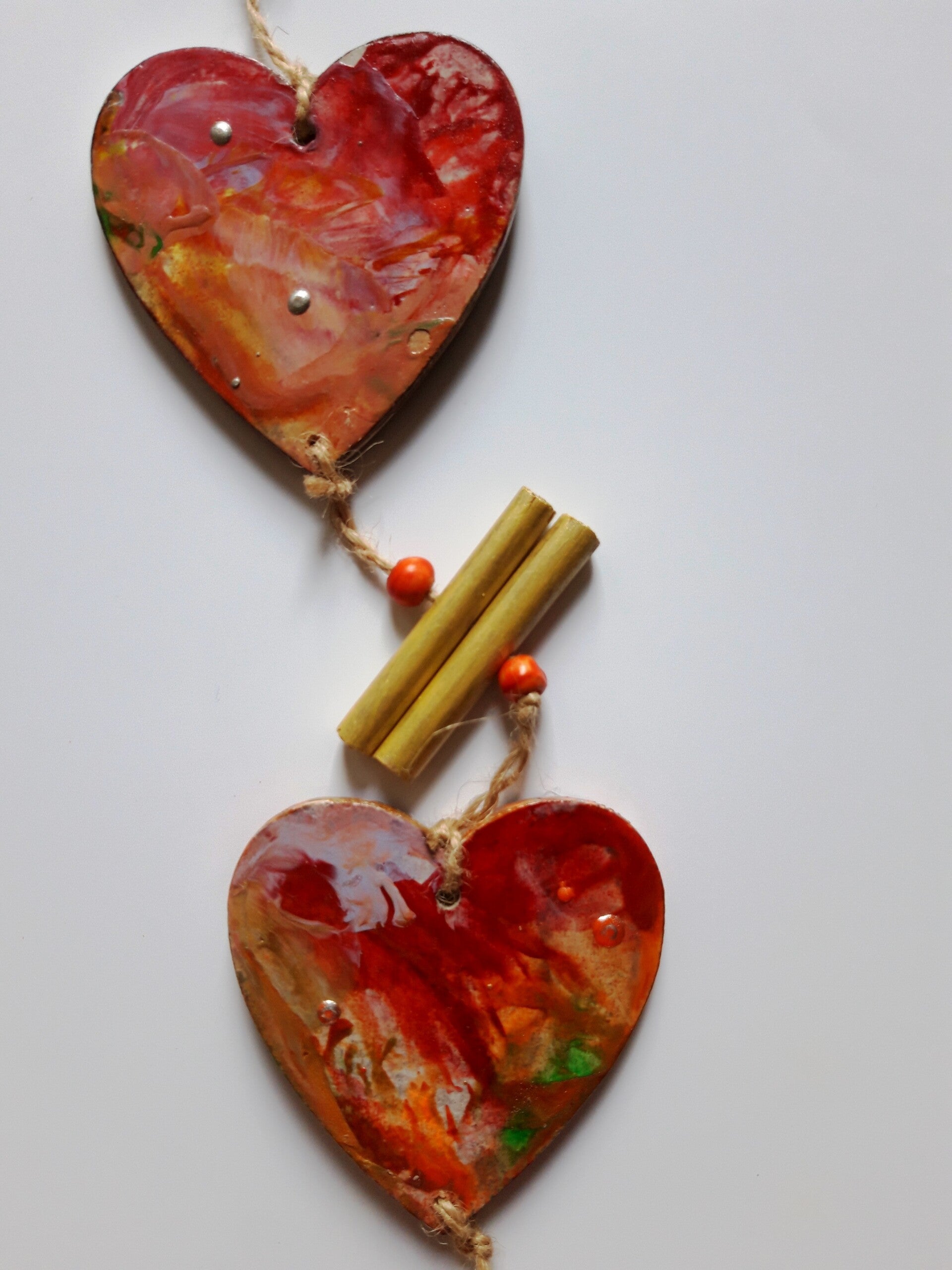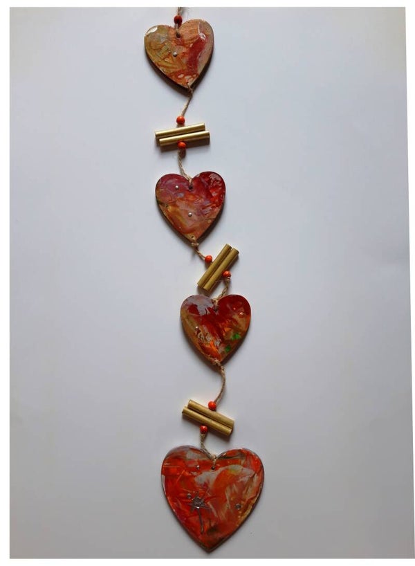Unieke raam/muur hanger met 4 harten (exemplaar 1)