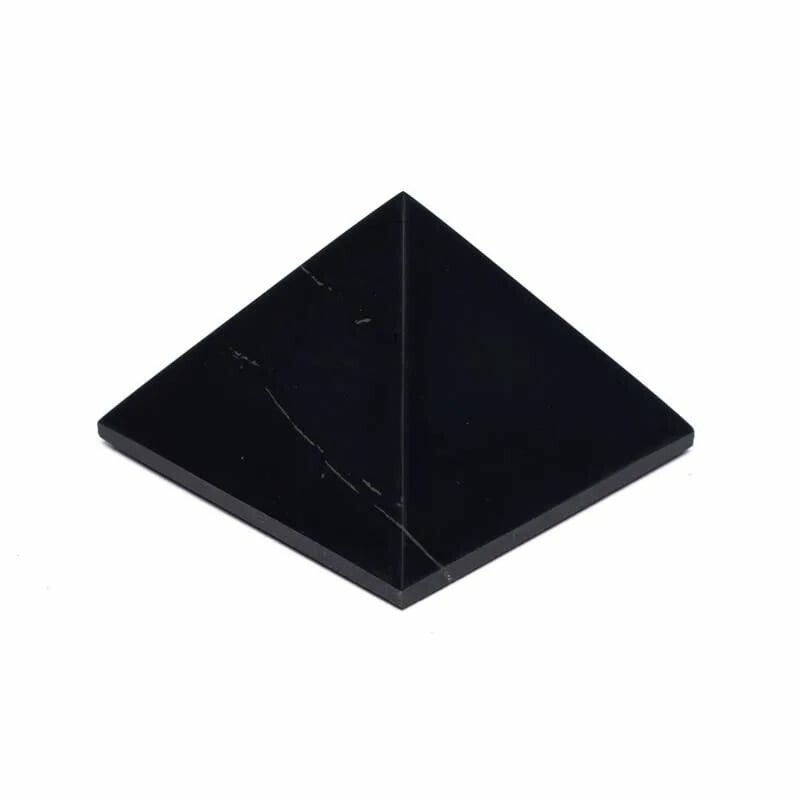 Gepolijste shungiet piramide uit Karelië, de locatie in Rusland waar het hoogst gekwalificeerde shungite vandaan komt. De steen dankt zijn naam aan de naam van een klein dorpje genaamd Shunga, waar de steen voor het eerst werd ontdekt.